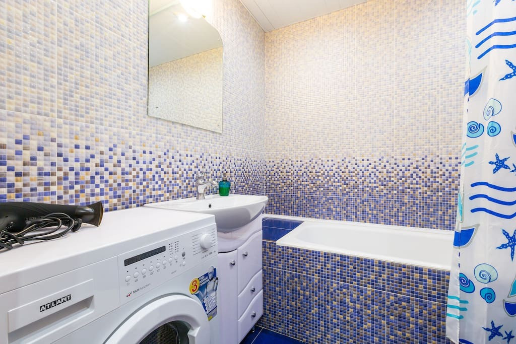Современная мебель 🛋 , двухспальная кровать и двухместный раскладной диван, бытовая техника, скоростной WI-FI, Спутниковое ТВ 📺, стиральная машина, кондицонер, гладильная доска, сушка для белья , оборудованная кухня, полный комплект посуды 🍽 для приготовления и приёма пищи .