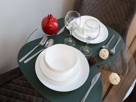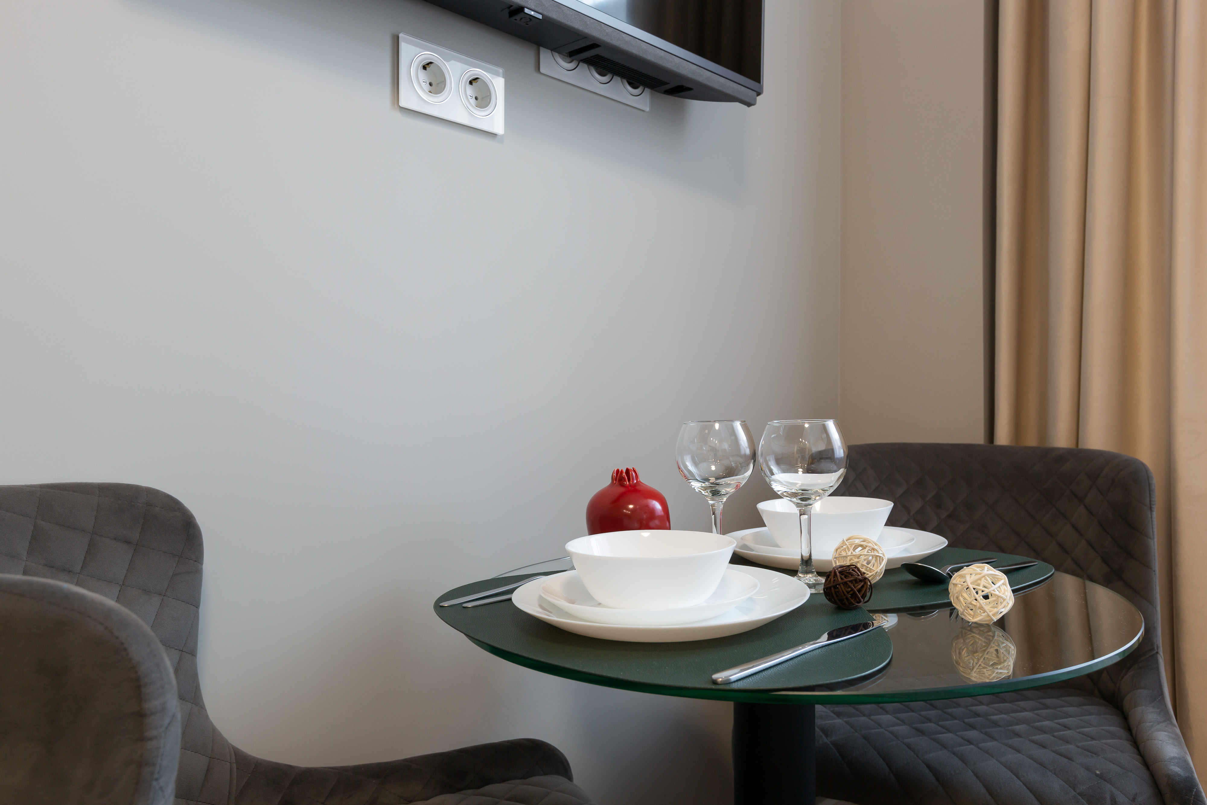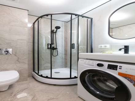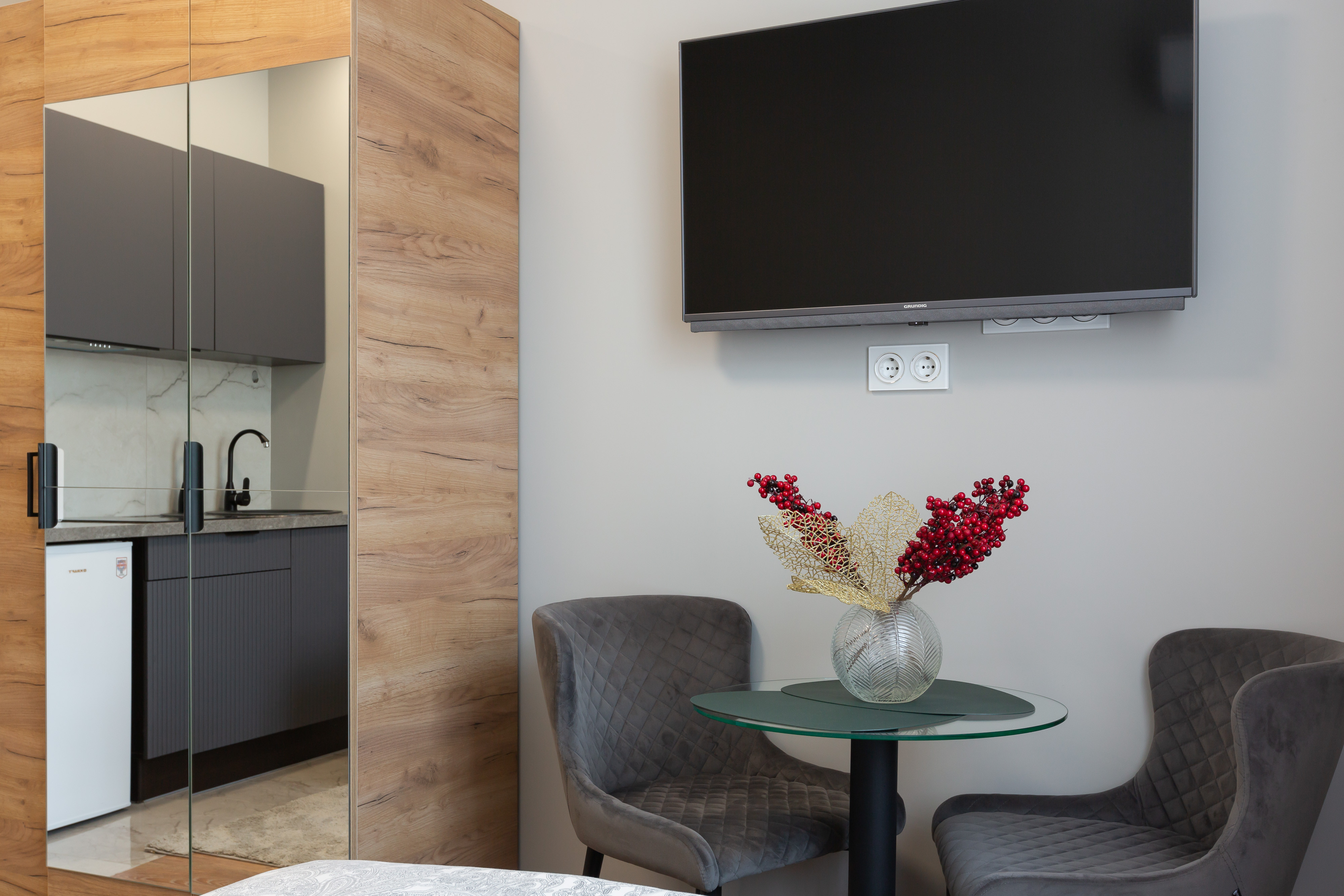 Современная мебель 🛋 , двухспальная кровать и двухместный раскладной диван, бытовая техника, скоростной WI-FI, Спутниковое ТВ 📺, стиральная машина, кондицонер, гладильная доска, сушка для белья , оборудованная кухня, полный комплект посуды 🍽 для приготовления и приёма пищи .