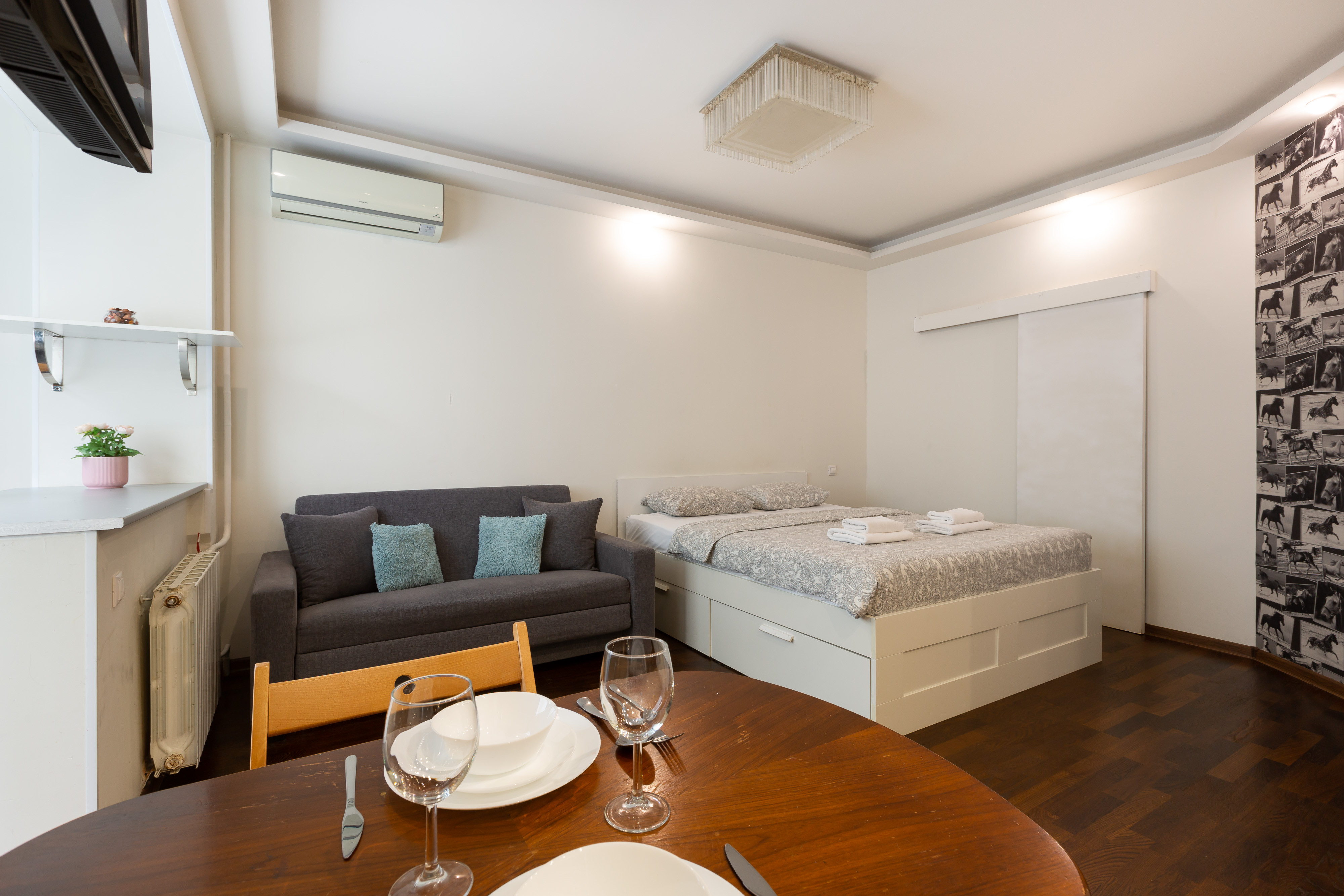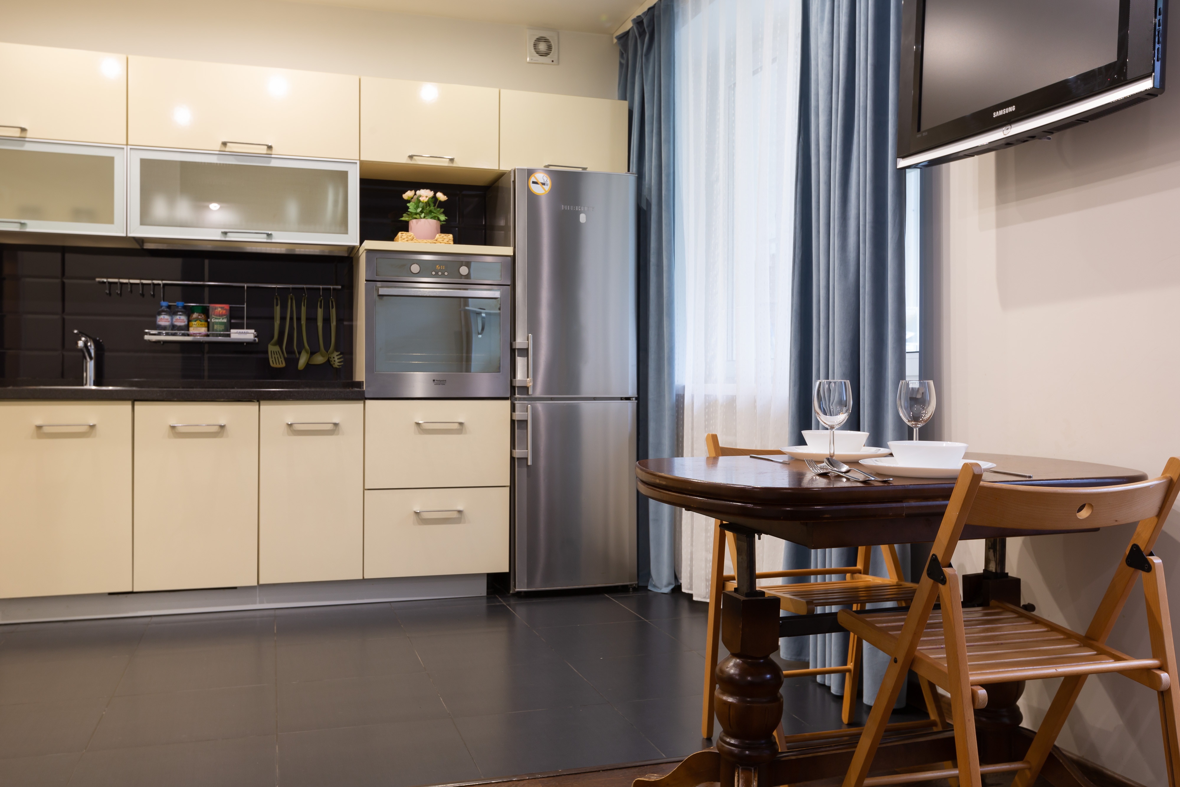 Современная мебель 🛋 , двухспальная кровать и двухместный раскладной диван, бытовая техника, скоростной WI-FI, Спутниковое ТВ 📺, стиральная машина, кондицонер, гладильная доска, сушка для белья , оборудованная кухня, полный комплект посуды 🍽 для приготовления и приёма пищи.