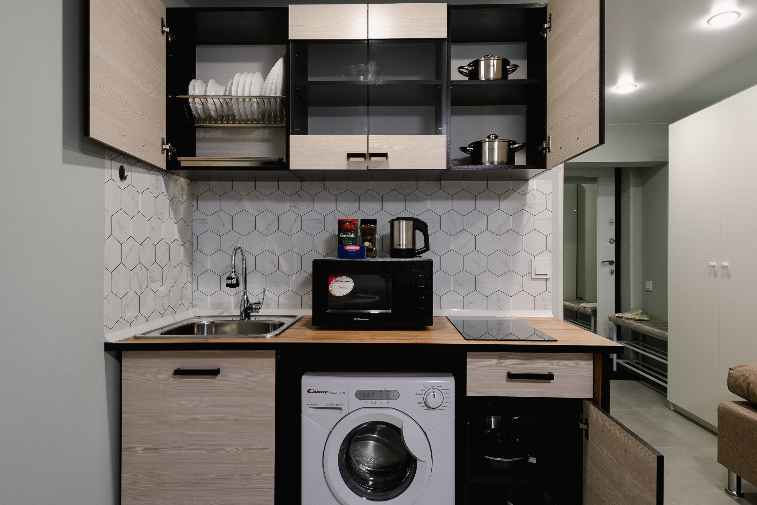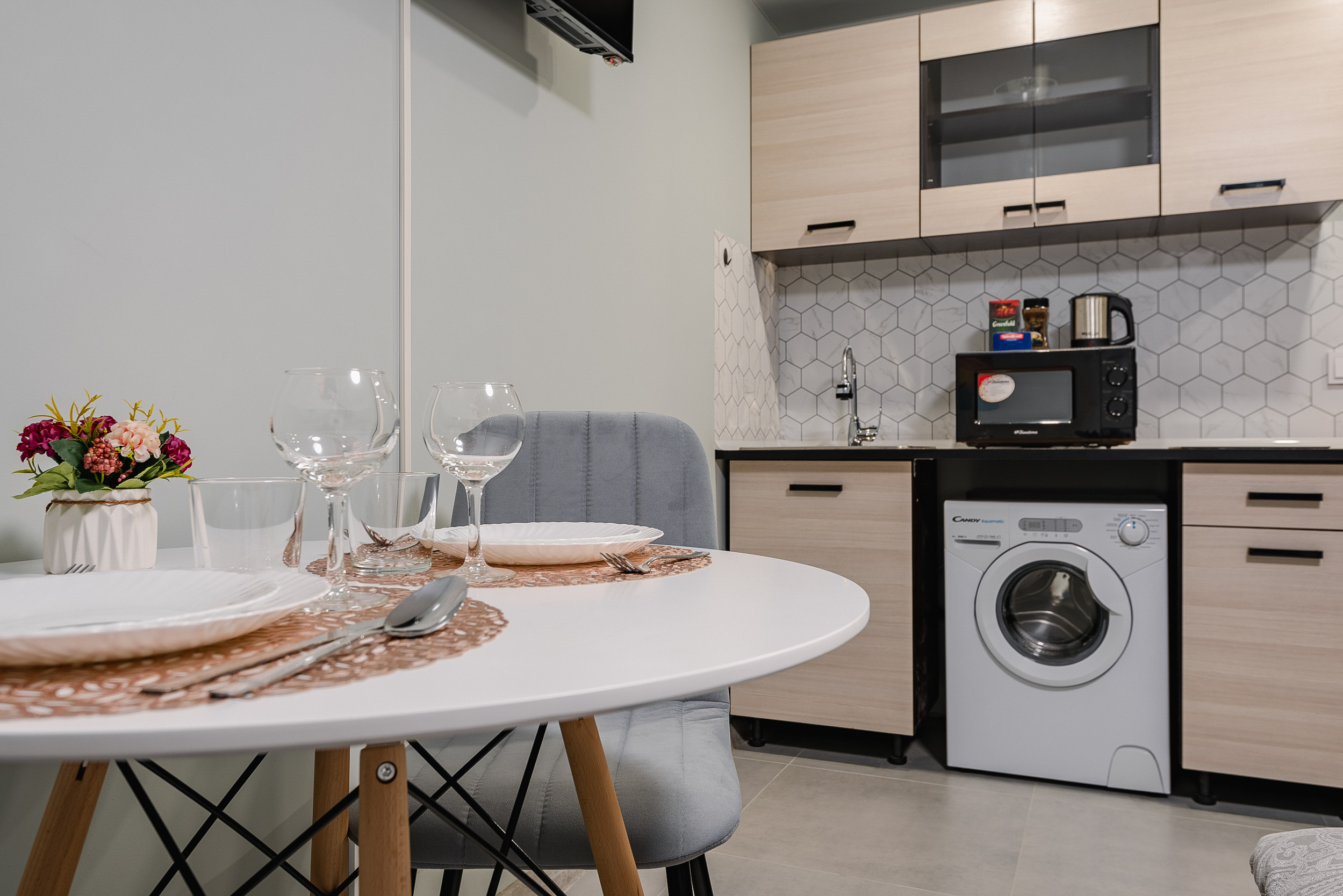 счетчики воды, электричество, интернет (wi-fi), цифровое тв (без подключения платных каналов), постельные принадлежности, полотенца, посуда , микроволновая печь , стиральная машина, утюг, гладильная доска, фен, одноразовые тапочки, средства личной гигиены, мыло и шампунь гостиничного типа , сушилка для белья
