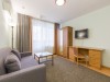 В спальне вас встретит роскошная двуспальная кровать, по бокам стоят тумбочки с ночниками – глубокой ночью в случае надобности супруги смогут пользоваться светом, не тревожа вторую половину. Возле дивана расположен журнальный столик, на стене напротив – телевизор современной модели – в этом уголке вы сможете собираться всей компанией и проводить время, наслаждаясь общением и просмотром телепередач. Также спальня оснащена рабочим местом – удобным письменным столом и стулом, благодаря чему не придется слоняться по всей квартире с ноутбуком, выбирая наиболее удобное положение. На кухне есть обеденный стол, кожаный диван и еще один телевизор. По вечерам на лоджии вы сможете любоваться фееричным видом, который откроется с одиннадцатого этажа. Металлическая дверь, установленная на входе, гарантирует максимальную безопасность. Злоумышленники при всем желании не смогут проникнуть за пределы этой надежной конструкции.