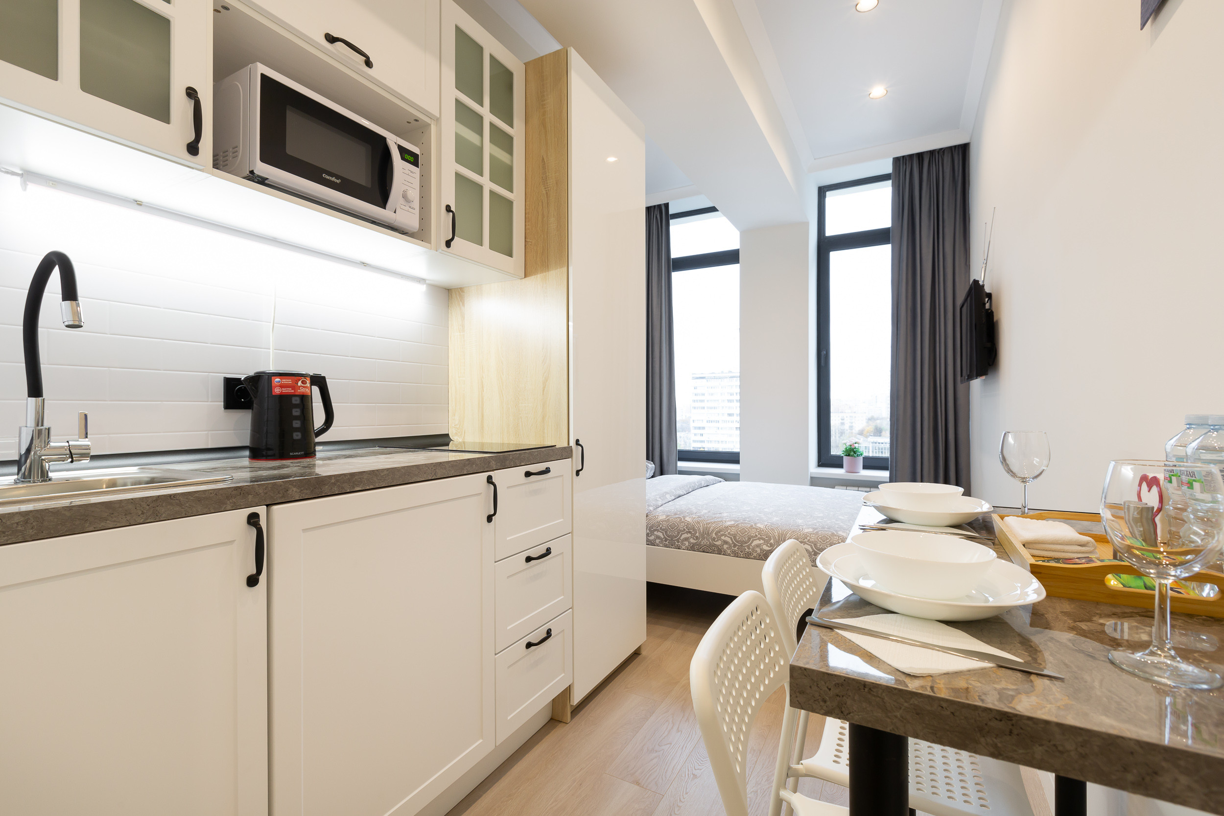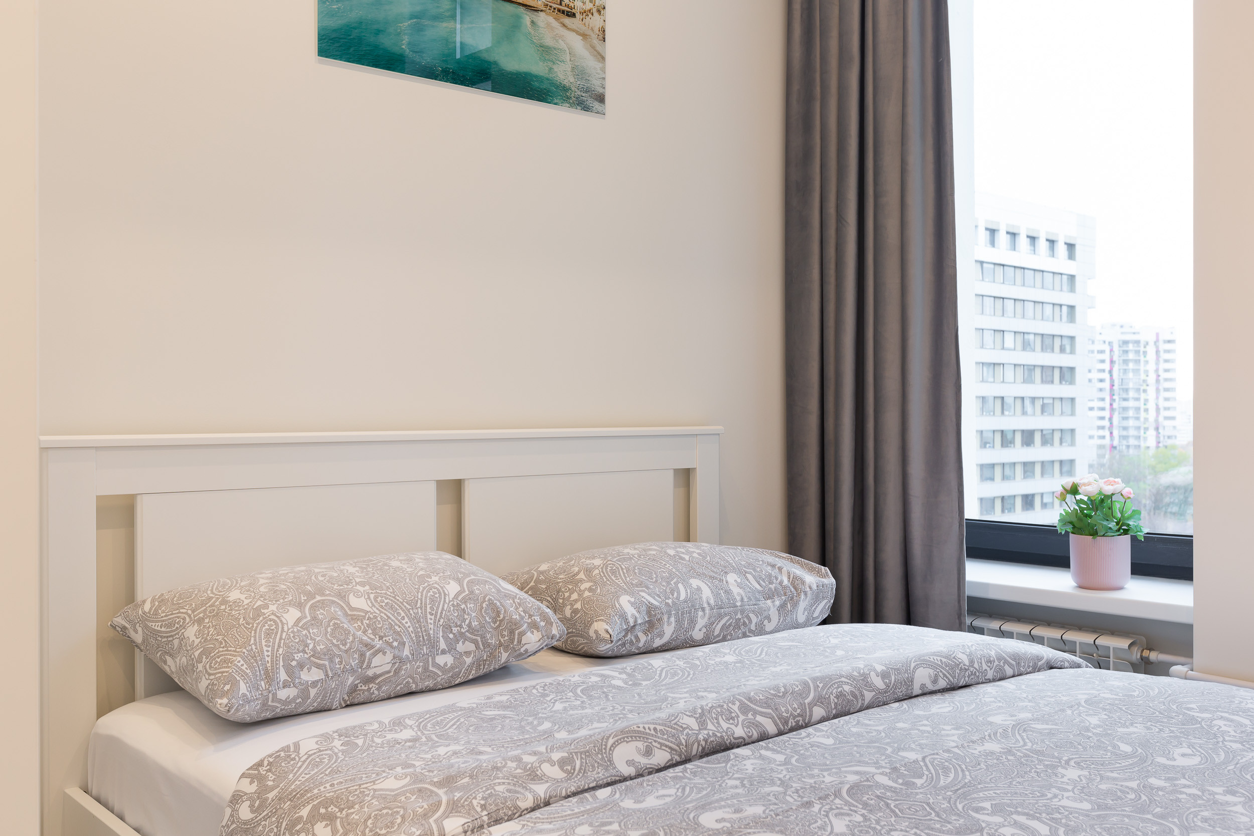 В квартире евроремонт, новая мебель в светлых тонах и предметы декора: картины и цветы. Окна металлопластиковые, поэтому внутри всегда тихо и спокойно. Чтобы вы могли создать комфортную для себя температуру, есть многофункциональный кондиционер.
