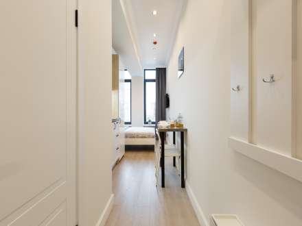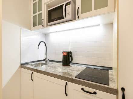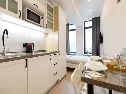 Сдается квартира-студия для двух человек в новом доме на проспекте Вернадского. В здании несколько лифтов, а рядом есть платная автостоянка. Окна квартиры выходят во двор без оживленного движения и шума.