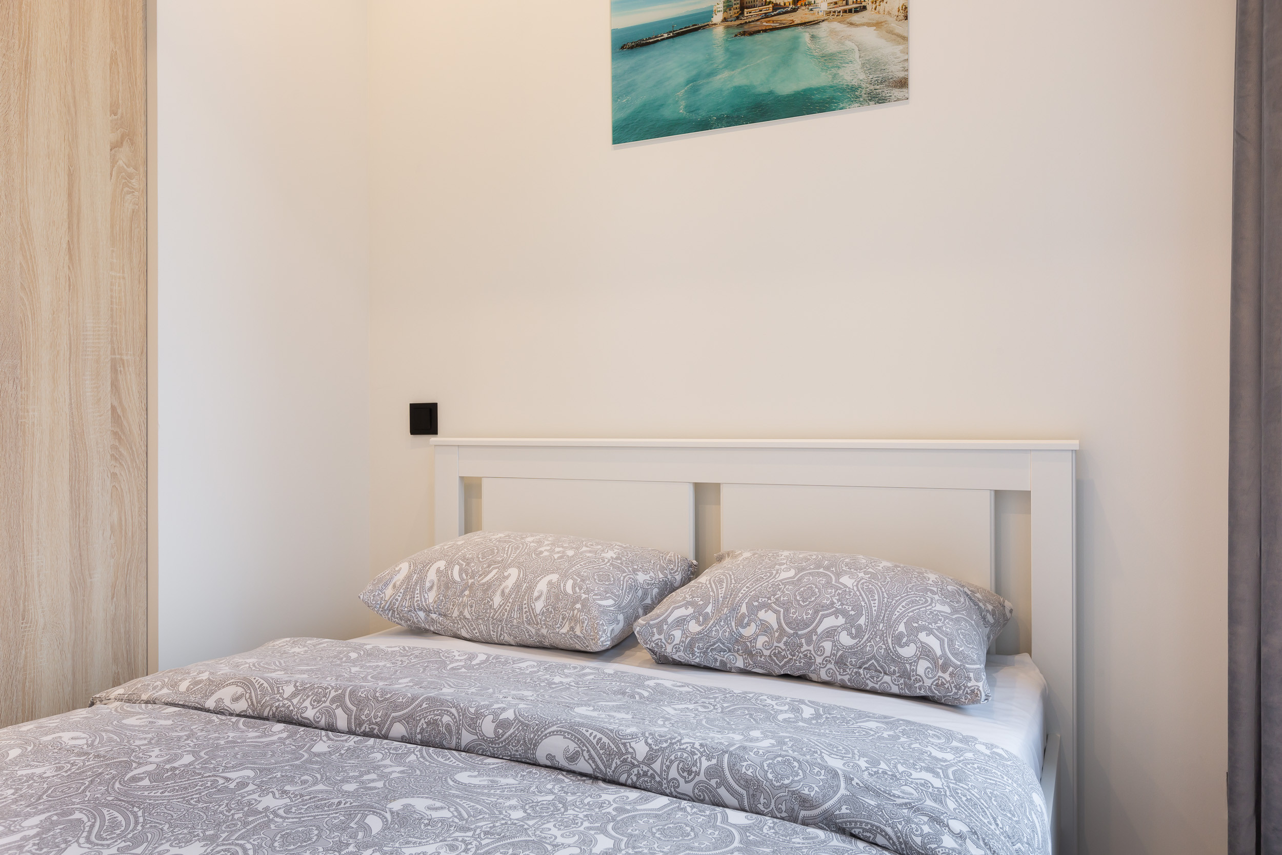 Двуспальная кровать с ортопедическим матрацем гарантирует комфортный отдых. Для гостей мы предоставляем необходимые постельные принадлежности и белье, которое мы не стираем, а сдаем в химчистку.