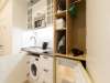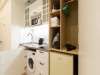 Под рабочей поверхностью вмонтирована стиральная машинка. Чтобы высушить и привести в порядок одежду, можно воспользоваться сушилкой, гладильной доской и утюгом.