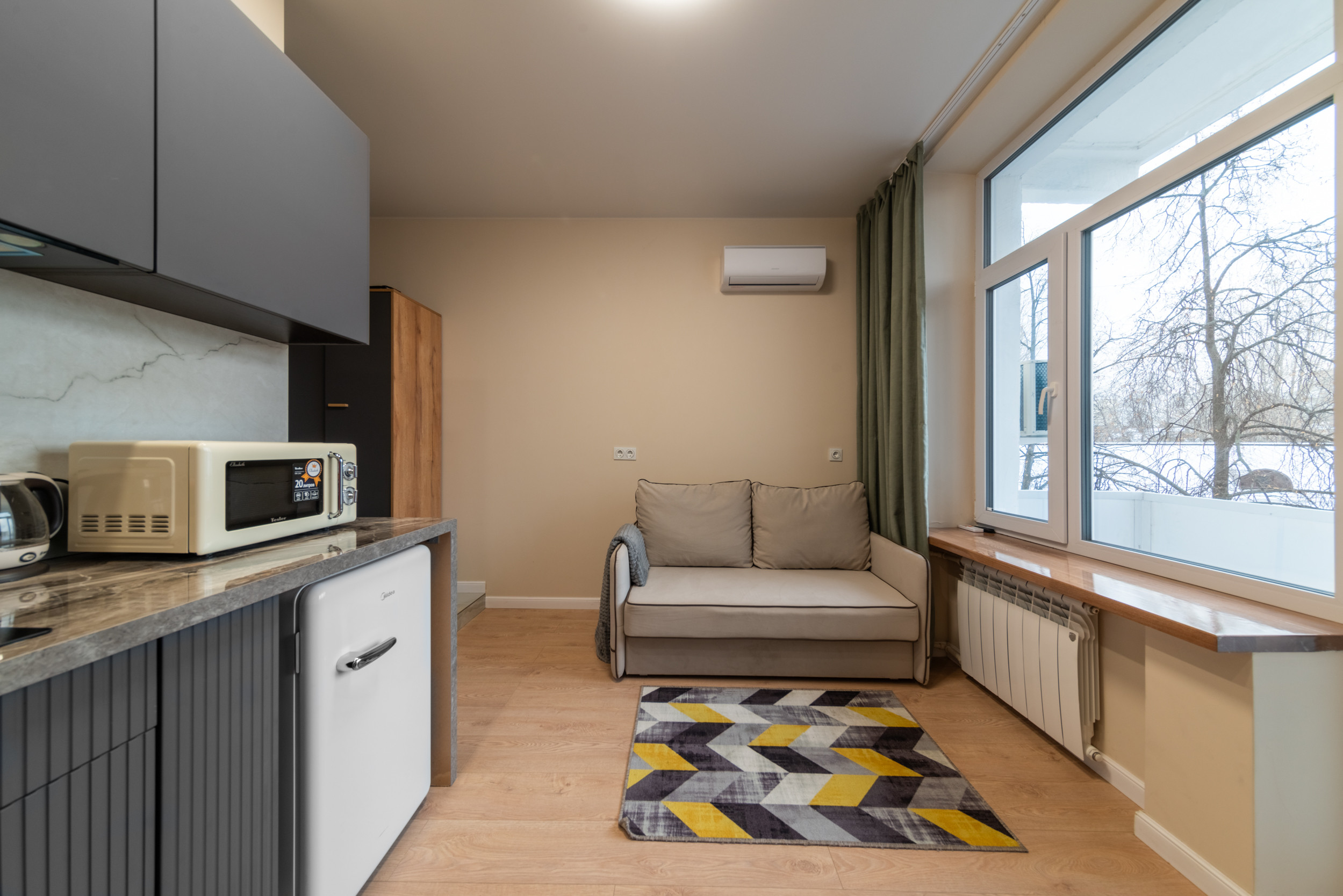 🏠 The apartment features the following amenities for a comfortable stay:Modern furniture, a double sofa bed, appliances, high-speed Wi-Fi, satellite TV, a washing machine, air conditioning, ironing board, clothes dryer, a fully equipped kitchen, and a full set of dishes for cooking and eating.