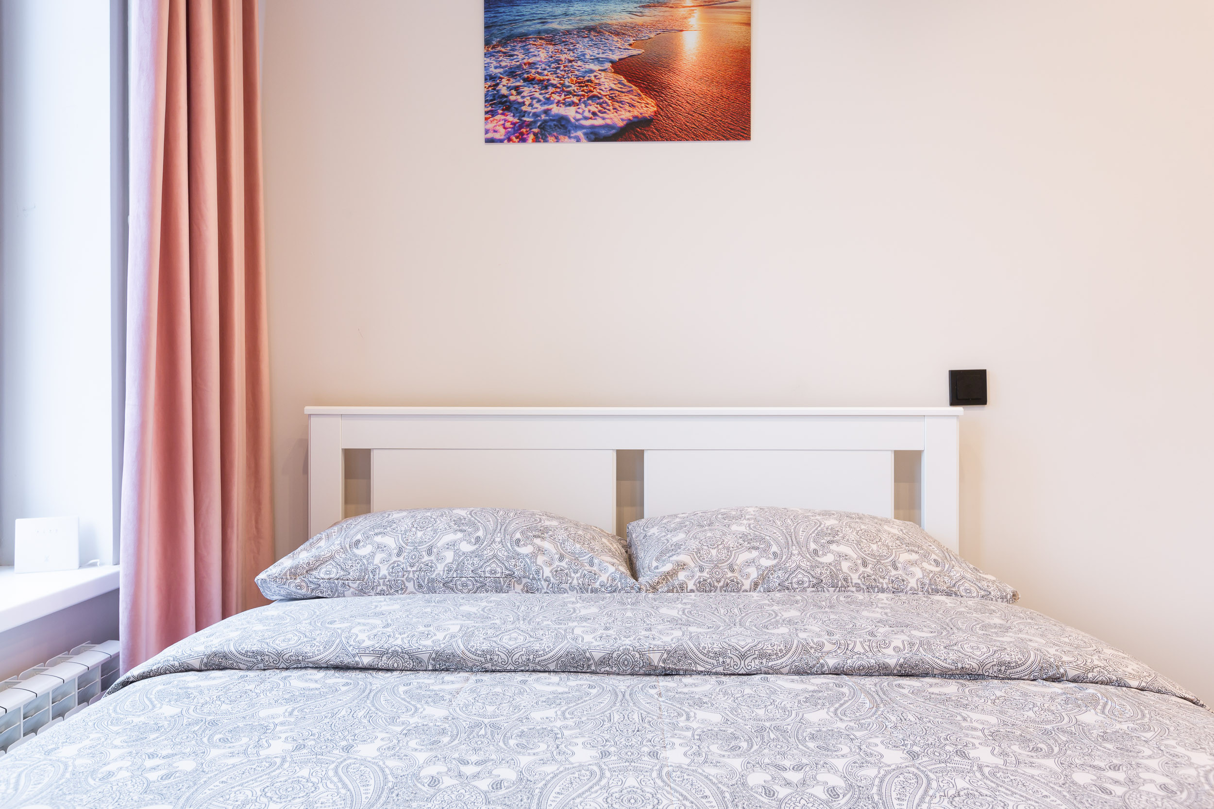 The bed is large and spacious, with fresh linens and all necessary bedding. We guarantee the sterility of linen, because we give it to dry cleaning.