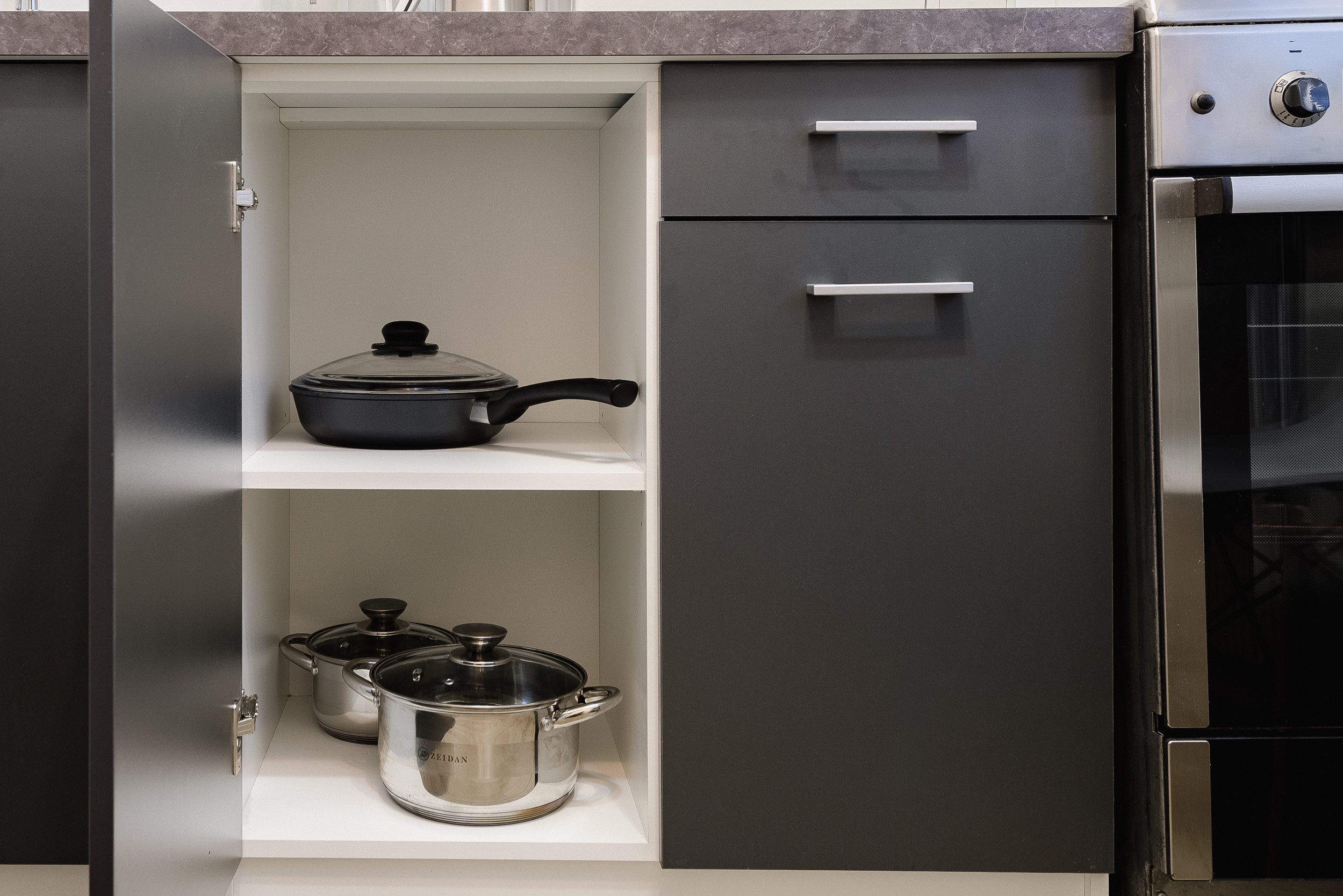 Modern furniture, two double beds and a double sofa bed, appliances, high-speed Wi-Fi, satellite TV, a washing machine, ironing board, clothes dryer, a fully equipped kitchen, and a full set of dishes for cooking and eating.